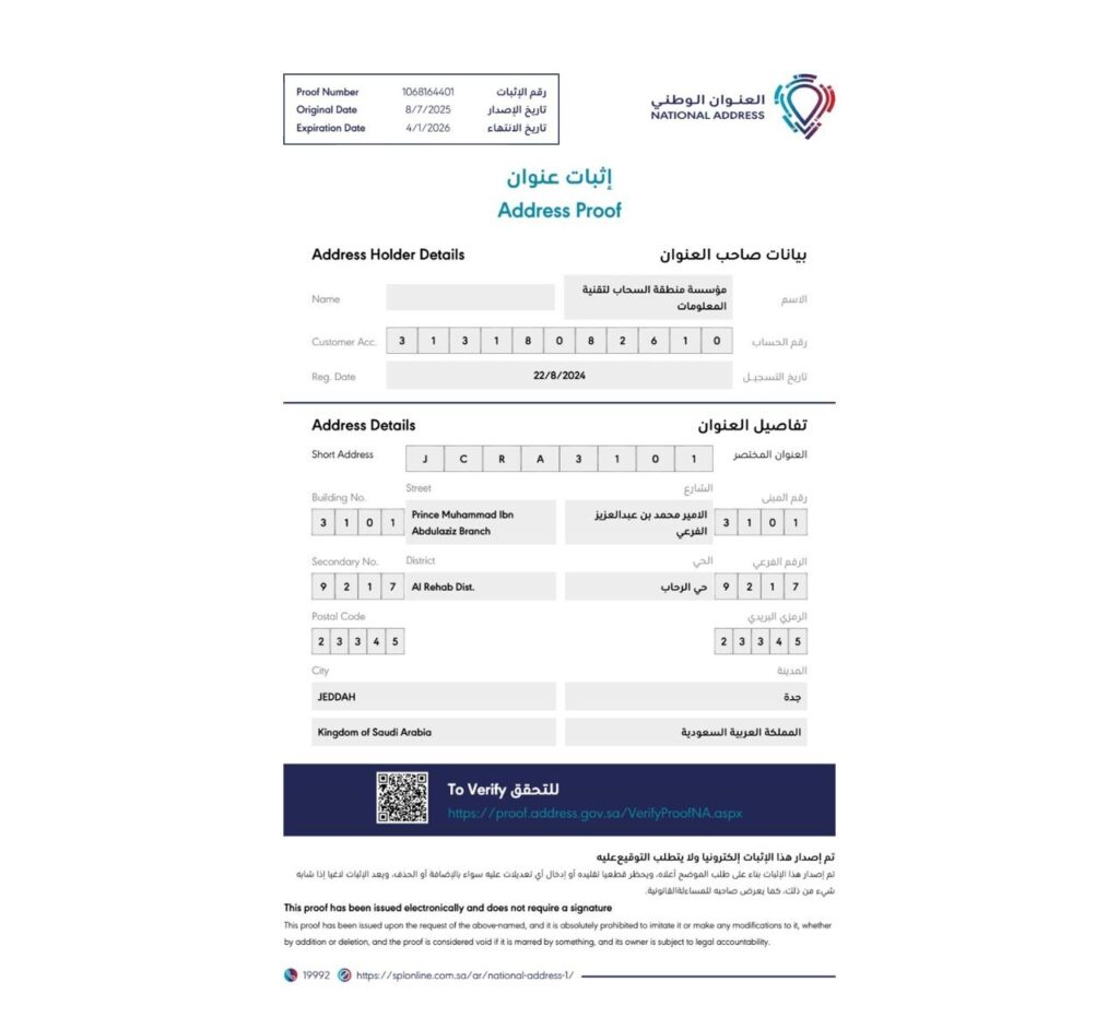 الإسم: مؤسسة منطقة السحاب لتقنية المعلومات